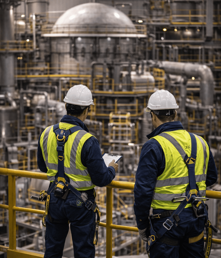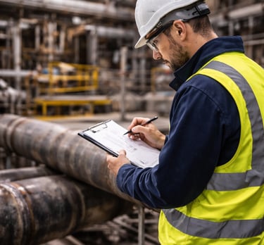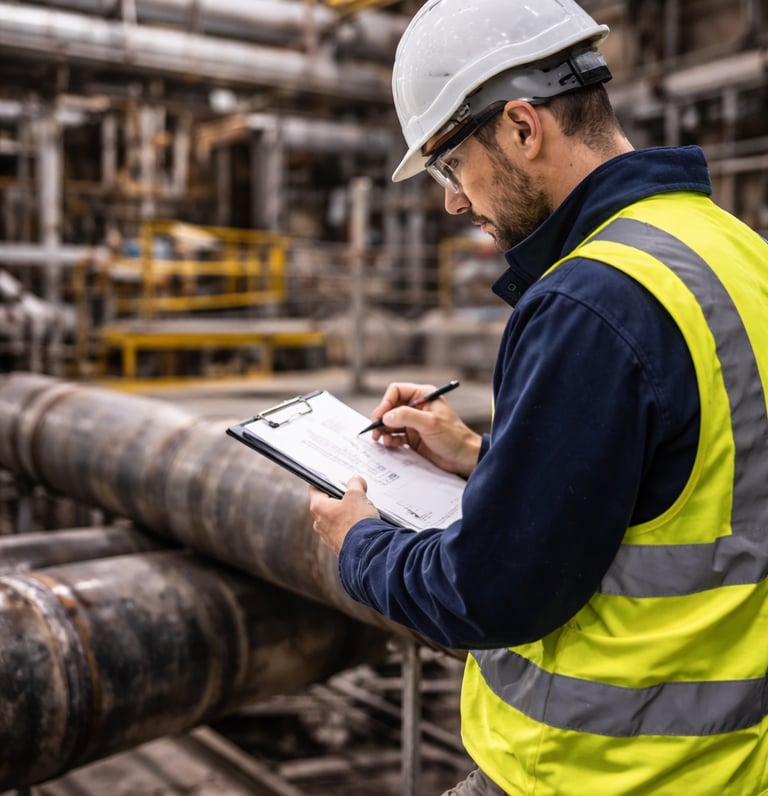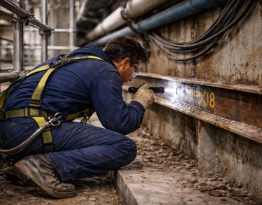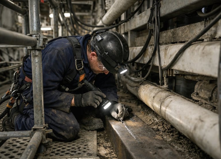 Le contrôle visuel est réalisé directement sur site, en tenant compte des réalités terrain : coactivité, accès, environnement, délais d’intervention. Il peut être effectué en conditions variées, y compris en accès difficile, en travaux en hauteur, ou au sein d’installations industrielles en fonctionnement.